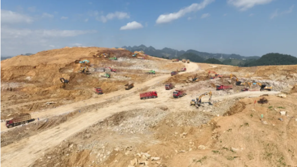 在项目一期工程现场,场平工作火热推进。该项目拟用地1.37万亩,相当于1200多个标准足球场大小。中建五局贵州毕节磷煤化工一体化项目场平负责人孙超介绍:“项目场平占地面积约5949亩,分为两标段,5个组团、15个工作面同时作业,投入300多台机械设备、400余名人员协同攻坚。”在保证安全和质量前提下,采取晴天24小时两班制昼夜施工,雨天重点实施石山爆破。7月高峰期将投入1000余台机械设备、1500余名人员,预计8月底完成场平任务。