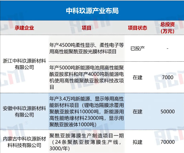 公开资料显示,浙江中科玖源新材料有限公司成立于2019年4月,位于金华兰溪市,专注于聚酰亚胺薄膜、浆料等基础性关键材料的研究、开发、生产及销售,产品适用于新能源、消费电子等多个领域,还涉及合成材料制造、电子专用材料制造等业务。