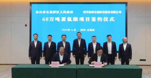 该项目的签约标志着和邦在蛋氨酸规模化发展上迈出关键一步。作为全球双甘膦龙头企业和国内领先的液体蛋氨酸供应商,和邦目前已具备7万吨液体蛋氨酸年产能。新项目建成后,将进一步提升公司在全球市场的综合竞争力,助力乐山市五通桥区建设成为具有全球影响力的蛋氨酸产业高地,为区域经济高质量发展注入新动能。