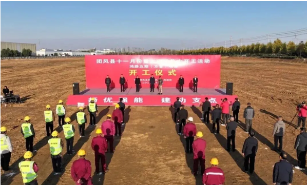 在佳菲新材料(湖北)有限公司年产2亿套高端环保可降解餐具项目开工现场,县领导张毅、徐绪忠、何耀清出席开工仪式。