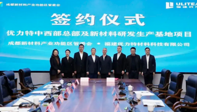 2025年12月02日讯:11月18日,成都新材料产业功能区管委会与福建优力特材料科技有限公司签署合作协议,优力特中西部总部及新材料研发生产基地项目正式落户成都彭州。
