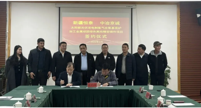 2025年2月26日,新疆恒泰绿能金属铸造有限公司与中国五矿集团旗下中冶京诚工程技术有限公司正式签订了《太阳能光伏发电制氢气在氢基竖炉加工金属球团(120万吨/年)绿色高纯精密铸件项目》总体设计合同。