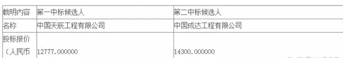 第一中标候选人:中国天辰工程有限公司