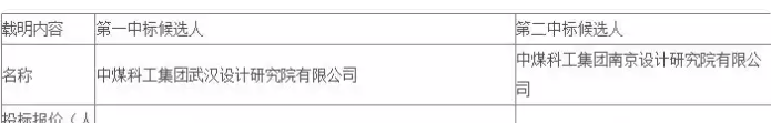 第一中标候选人:中煤科工集团武汉设计研究院有限公司